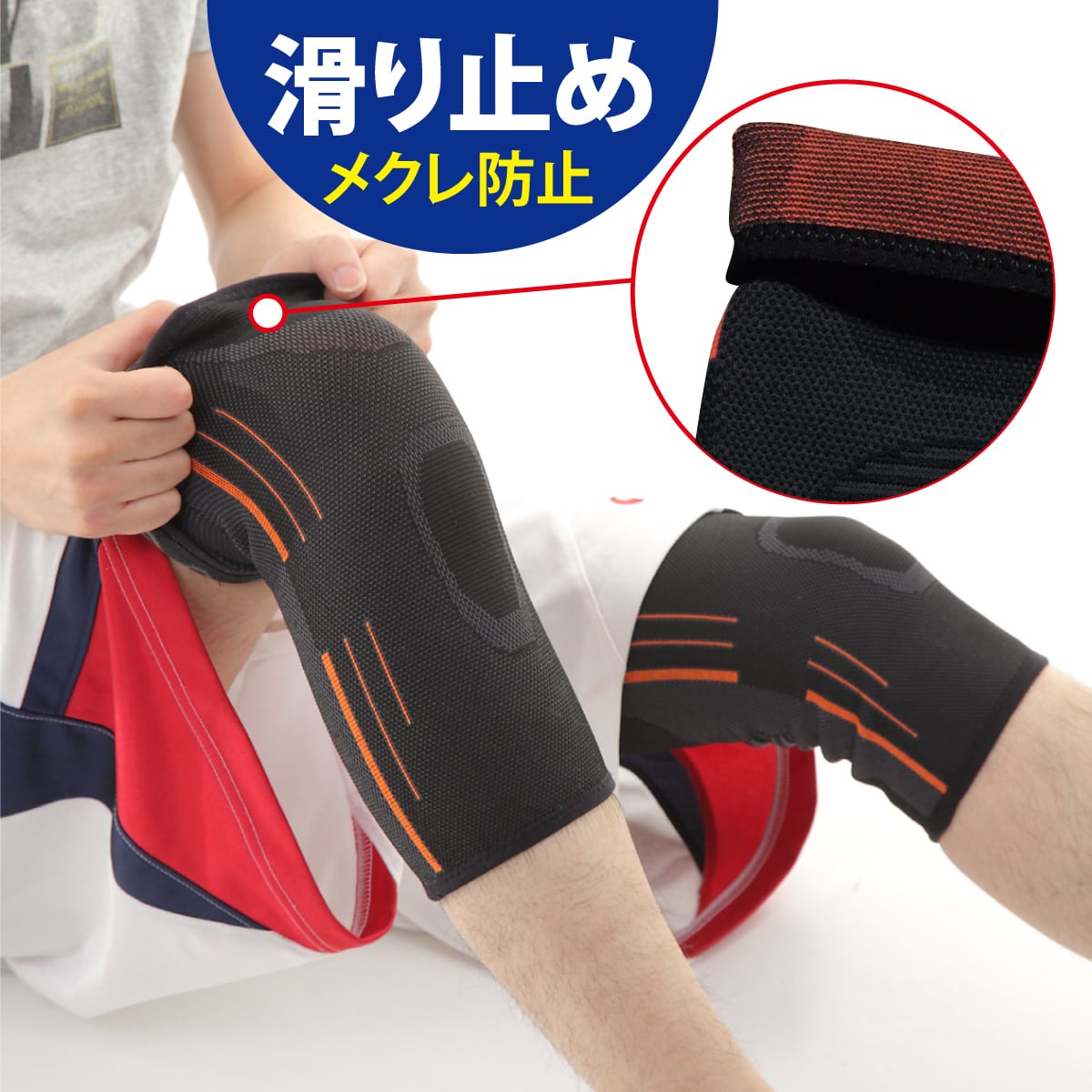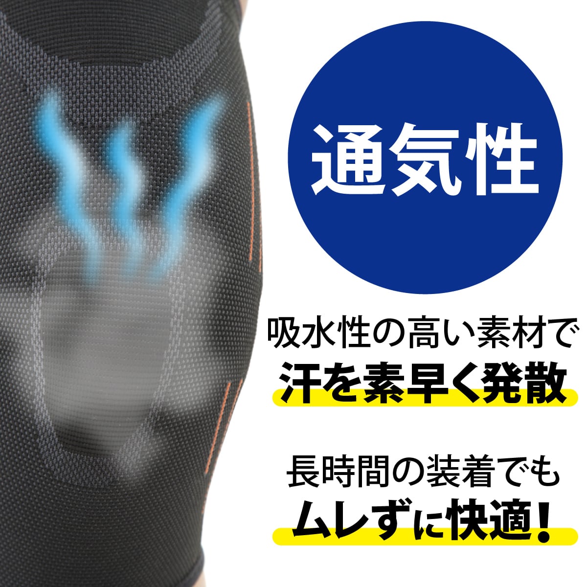 足を通して履くだけの簡単装着で、膝回りにしっかりフィット!